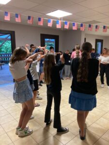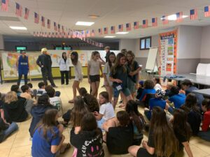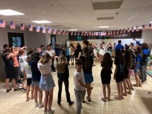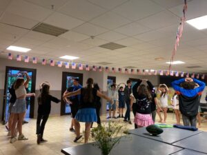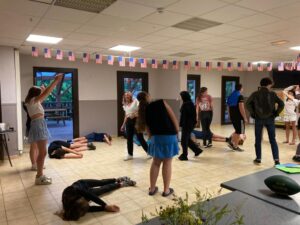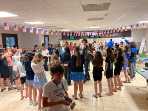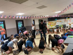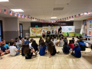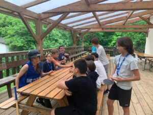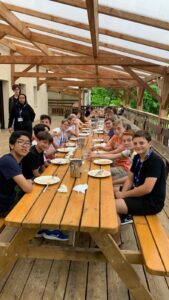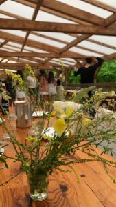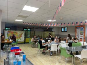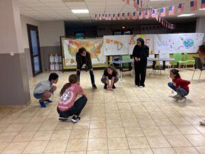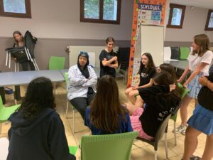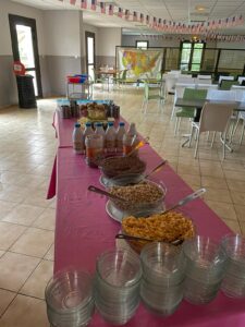 Matinée en cours en petits groupes et activités manuelles, tous protégés sous la tonnelle car malheureusement la pluie s’est invitée pour le reste de la journée.