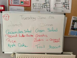 A midi, poulet coco et concombre en entrée…oui oui, des concombres! Les assiettes sont vides, vous pouvez être fiers de leur éducation culinaire!