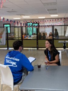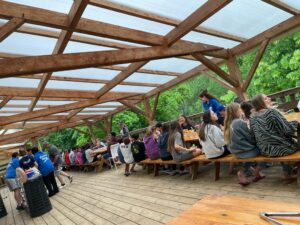 Pique-nique et temps de détente en attendant le service de l’immigration qui nous permettra d’accéder à nos chambres.