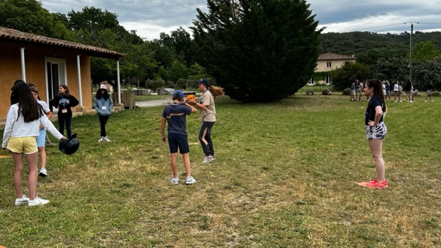 Mise en pratique du briefing ! Les enfants découvrent le base ball en décomposant les trois étapes principales : lancer de balle, taper avec la batte et courir en marquant les étapes !